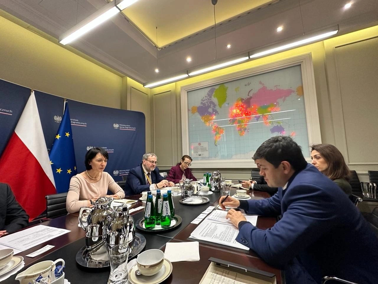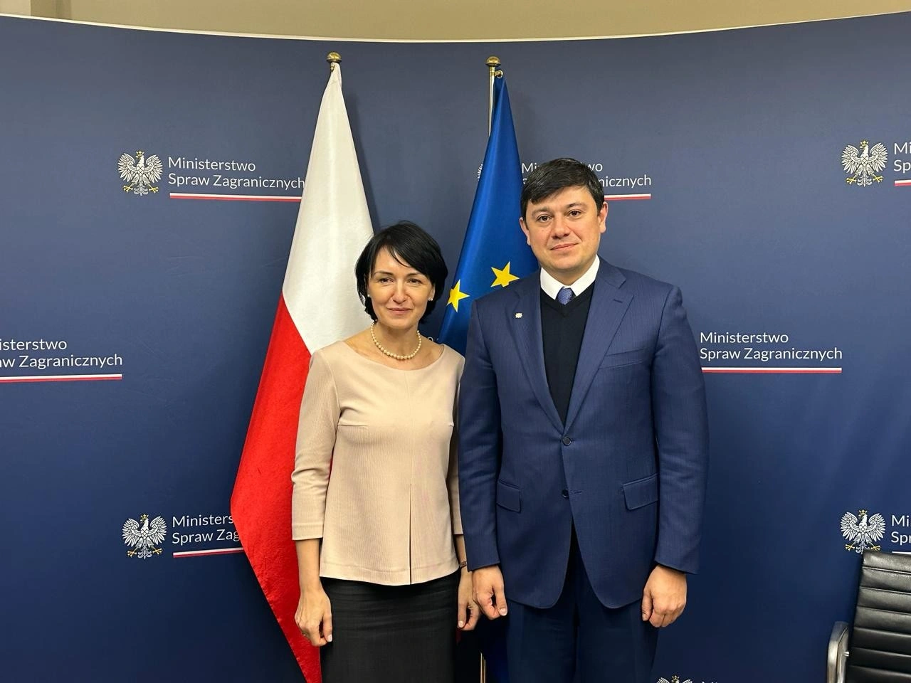 Səfər çərçivəsində Komitə sədri Polşa Respublikası xarici işlər nazirinin müavini Henrika Moscicka-Dedis ilə görüşüb. Qonaqları salamlayan nazir müavini Polşa ilə Azərbaycan arasında çoxəsrlik dostluq və əməkdaşlıq münasibətlərinin zamanla daha da möhkəmlənəcəyinə ümidvar olduğunu və bu səfərin ikitərəfli əlaqələrin inkişafına töhfə verəcəyinə əminliyini ifadə edib, Azərbaycan icmasının Polşa cəmiyyətinə inteqrasiyasının yüksək səviyyədə olduğunu bildirib. Henrika Moscicka-Dedis xaricdə yaşayan polyaklarla bağlı dövlət siyasətinin əsasını polyak dil və tarixinin, mədəni irsin təbliği, polyakların repartriasiyası, rifahlarının yaxşılaşdırılması və digər məsələlərin təşkil etdiyini, bu istiqamətdə polyakların sıx məskunlaşdığı ölkələrdə layihələr həyata keçirildiyini bildirilib.