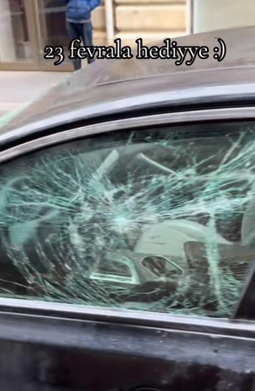 Metbuat.az Milli.az-a istinadən bildirir ki, sosial şəbəkələrdə yayılan görüntülərdə qızın "23 fevral" münasibəti ilə sevgilisinin "Kia" markalı avtomobilinin şüşələrini qırması əks olunub.