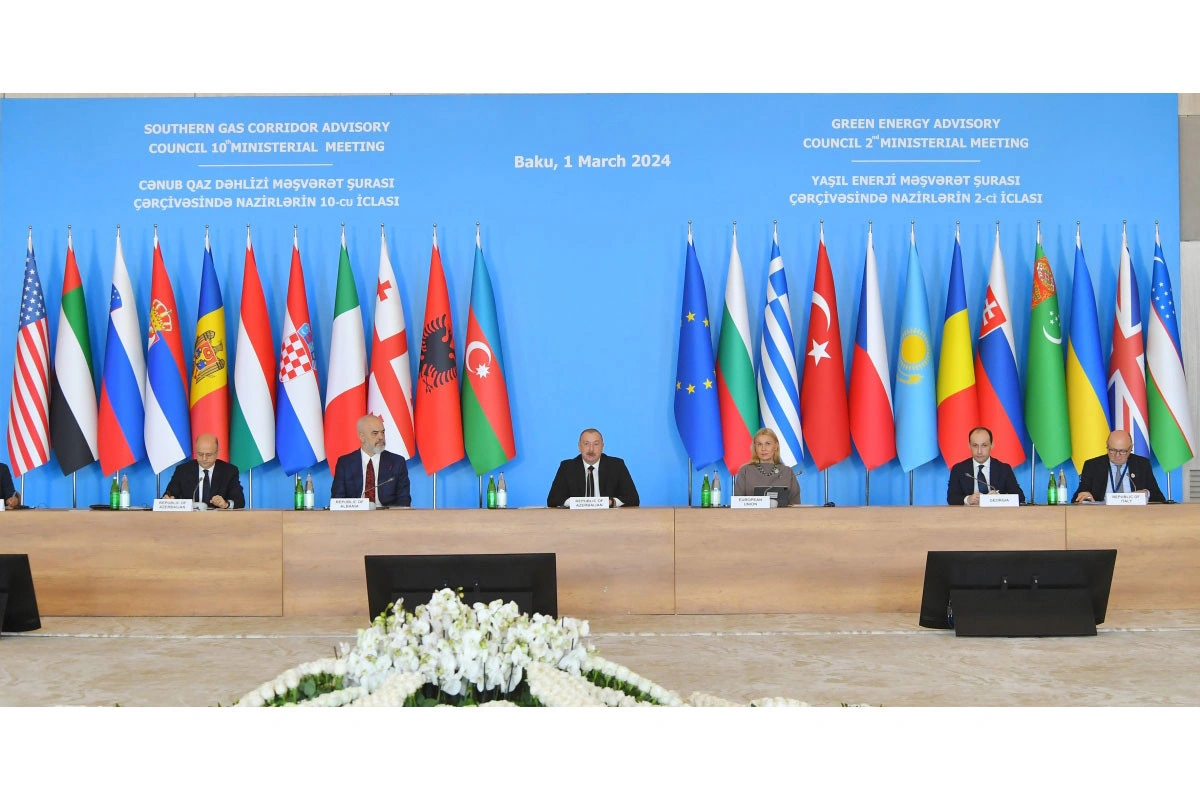 Martın 1-də Bakıda, “Gülüstan” sarayında Cənub Qaz Dəhlizi Məşvərət Şurası çərçivəsində nazirlərin 10-cu və Yaşıl Enerji Məşvərət Şurası çərçivəsində nazirlərin 2-ci iclasları keçirilib.