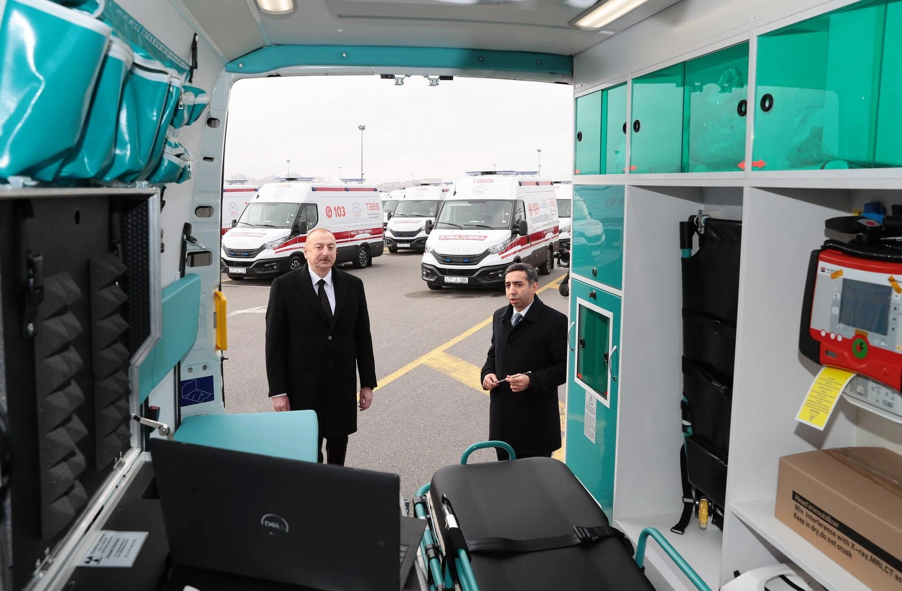 Martın 16-da Azərbaycan Respublikasının Prezidenti İlham Əliyev İcbari Tibbi Sığorta üzrə Dövlət Agentliyi tərəfindən alınmış müasir təcili tibbi yardım avtomobilləri ilə tanış olub.