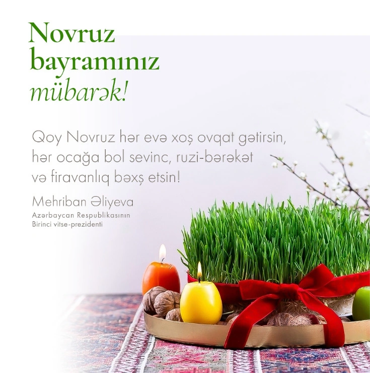 Novruz bayramı münasibətilə sizi səmimi-qəlbdən təbrik edir, hər birinizə möhkəm cansağlığı, sevinc, səadət və uzun ömür arzulayıram! Təbriklərə və xoş arzulara görə hər kəsə minnətdaram. Sevginizə, səmimiyyətinizə, hörmət və diqqətinizə görə çox sağ olun! Qoy təbiətin oyanması və yenilənməsinin rəmzi olan bu bayram hər birinizin ocağına sağlıq, qarşılıqlı anlaşma və əmin-amanlıq gətirsin! Allah Vətən uğrunda həlak olmuş bütün şəhidlərimizə rəhmət eləsin, onların doğmalarına və yaxınlarına dözüm və səbir versin. Uca Tanrı mərhəmətini xalqımızdan heç zaman əsirgəməsin!”