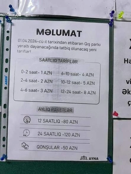 Bakıda Qış parkının yeraltı avtomobil dayanacağında parkinq üçün tətbiq edilən qiymətlər bahalaşıb.
