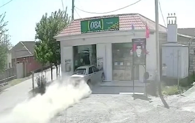 Qəza zamanı xəsarət alan olmasa da, marketin giriş hissəsi dağılıb və nəqliyyat vasitəsi zədələnib. Qəzanın baş verməsi anbaan təhlükəsizlik kamerasına düşüb.