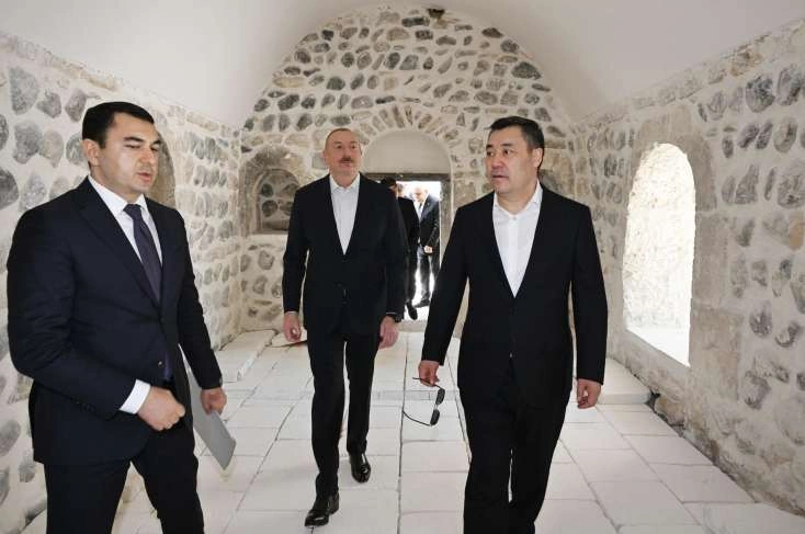 Azərbaycan Prezidenti İlham Əliyev və Qırğız Respublikasının Prezidenti Sadır Japarov aprelin 25-də Ağdamda Pənahəli xanın sarayı və İmarət kompleksində görülən işlərlə tanış olublar.