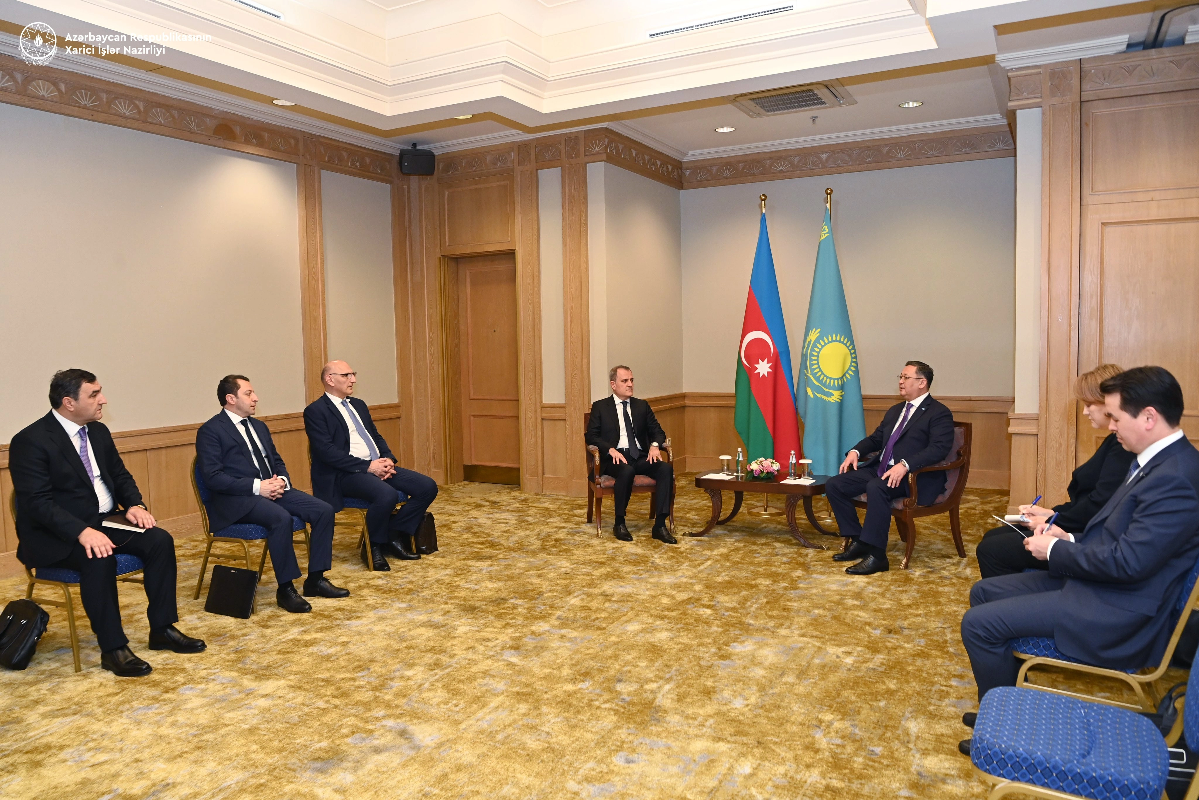 Azərbaycan Respublikasının xarici işlər naziri Ceyhun Bayramov Qazaxıstan Respublikasına işgüzar səfəri çərçivəsində bu ölkənin baş nazirinin müavini, xarici işlər naziri Murat Nurtleu ilə görüşüb.