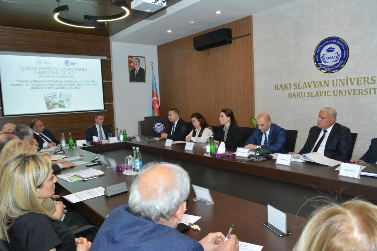 Mayın 24-də Bakı Slavyan Universiteti (BSU) və Sosial Tədqiqatlar Mərkəzinin (STM) birgə təşkilatçılığı ilə keçirilən “Qərbi Azərbaycana Qayıdış: Tarixi irsin izi ilə” elmi-praktiki konfransda “Tarixi Azərbaycan torpaqlarında maddi-mədəni irsimiz” və “Qərbi Azərbaycana qayıdış: tarixi torpaqlarda maddi-mədəni irsimiz” kitablarının təqdimatı olub.