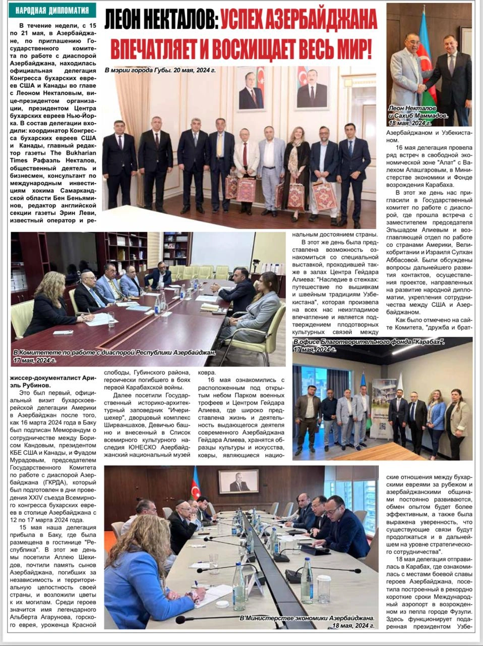 ABŞ-də “Buxarian Tayms” (“The Bukharian Times”) qəzetində ABŞ və Kanadanın Buxara Yəhudiləri Konqresinin nümayəndə heyətinin 15-21 may tarixində Azərbaycana səfərindən bəhs olunub.