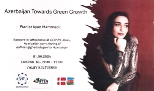 Danimarkanın paytaxtı Kopenhagen şəhərində “Danimarka-Azərbaycan Gənclər Cəmiyyəti”nin təşkilatçılığı və Azərbaycan Respublikası Diasporla İş üzrə Dövlət Komitəsinin dəstəyi ilə gənc azərbaycanlı pianoçu, respublika və beynəlxalq müsabiqələr laureatı, “Qran Pri” mükafatçısı, Avstriyanın Anton Brukner adına Konservatoriyasının tələbəsi Ayan Məmmədlinin “Yurdumun gözəlliyi həzzin musiqilərdə” adlı layihəsinin təqdimatı və solo konserti keçirilib. Tədbir “Yaşıl dünya naminə həmrəylik ili” çərçivəsində COP29 münasibətilə təşkil edilib.