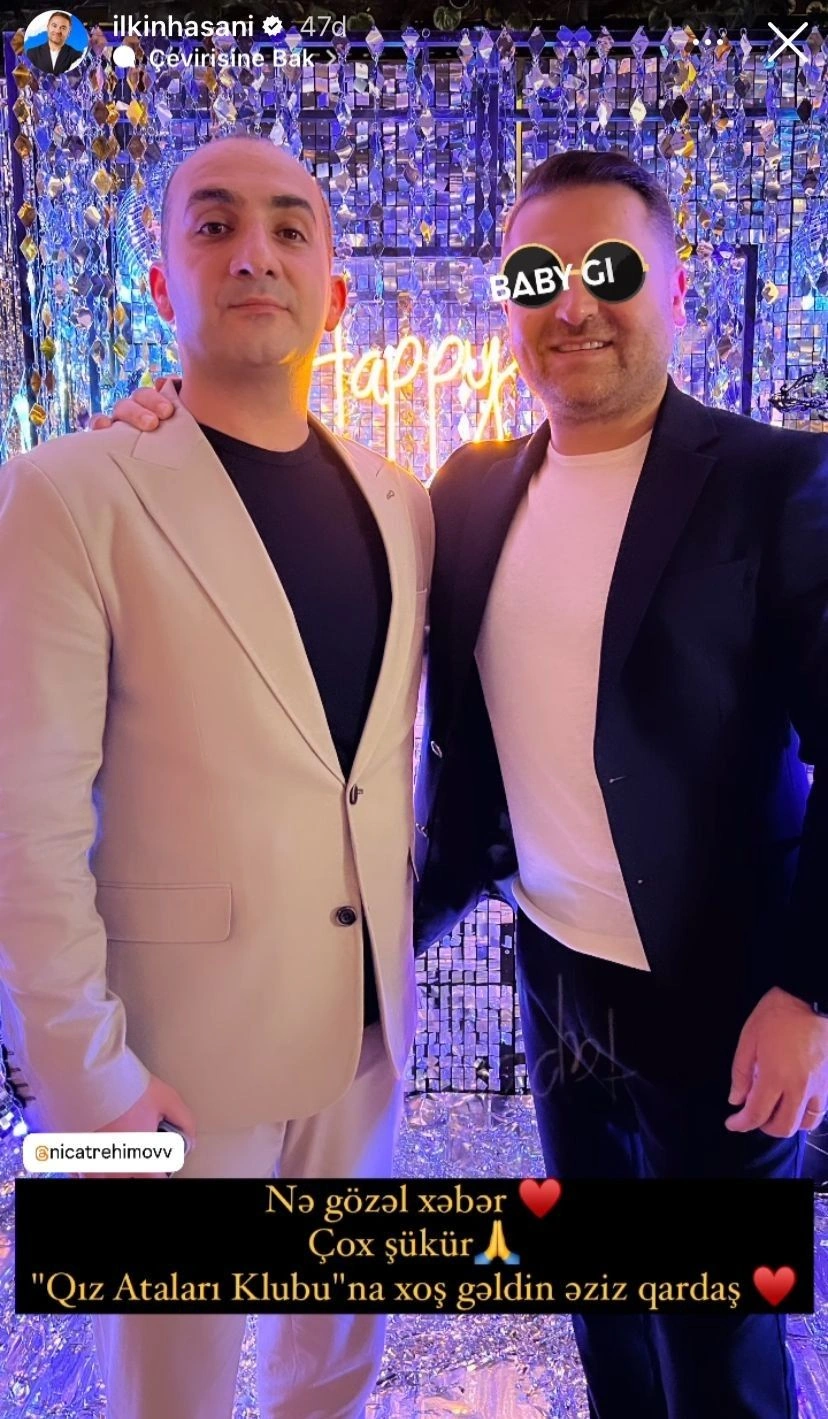 Metbuat.az xəbər verir ki, bununla bağlı aparıcı İlkin Həsənli sosial mediada paylaşım edib. O, aktyorla birgə fotolarını paylaşaraq qeyd edib: