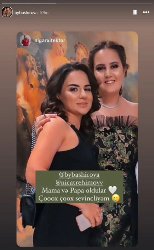 Aktyorun xanımı Ülviyyə Rəhimova isə bloqer Nigar Seyidin onlara yazdığı “Ana və ata oldular. Çox sevincliyəm” paylaşımını yayımlayıb.