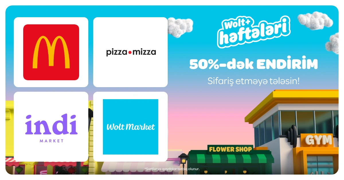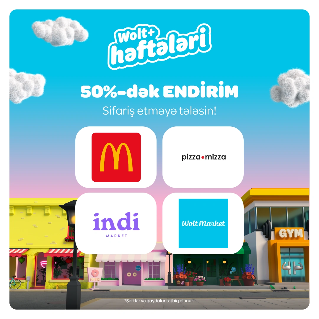 30 iyun tarixinədək Wolt+ abunəçiləri 0₼ çatdırılma haqqından və 50%-ə qədər endirimlərdən yararlana bilərlər. Bu təkliflər seçilmiş restoran və mağazalardan verilən sifarişlər üçün keçərlidir və yalnız Wolt+ abunəçilərinə məxsusdur. Wolt+ həftələrində iştirak edən məkanlara McDonald's, Pizza Mizza, Wolt Market, İndi Market, KFC, Papa Johns, Shaurma №1 və daha çox restoran və mağaza daxildir.