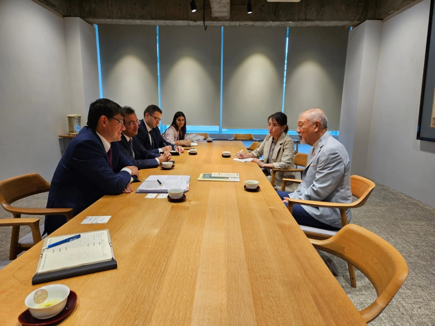 Görüşdə Azərbaycanın Yaponiyadakı səfiri Gursel İsmayılzadə və Azərbaycan-Yaponiya Dostluq Mərkəzinin rəhbəri Xəlil Kələntər də iştirak edib.