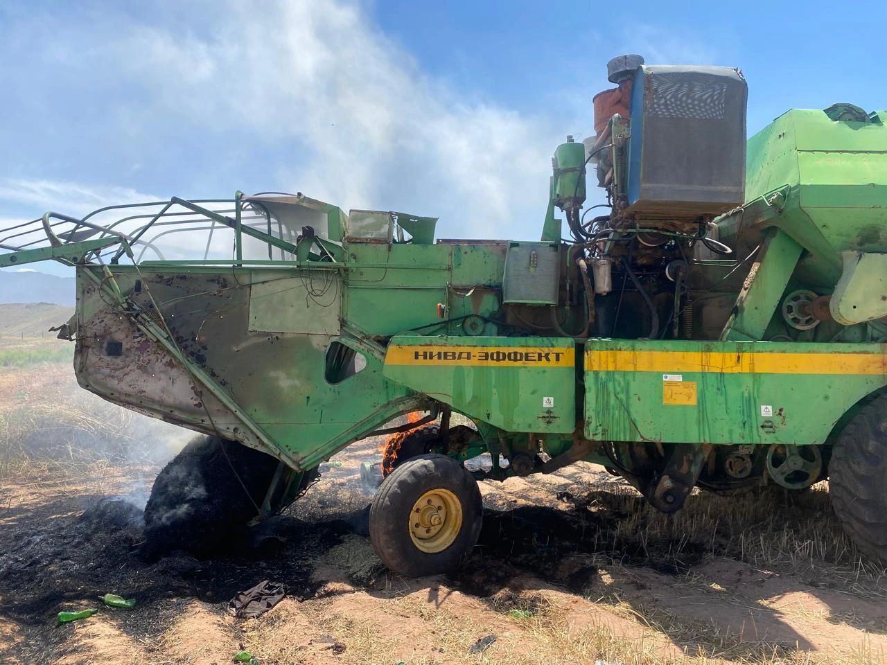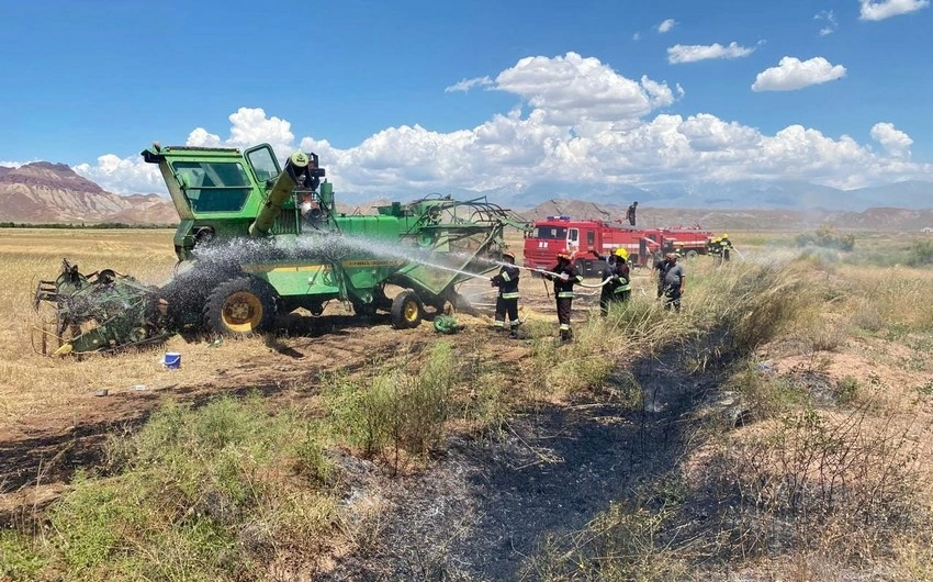 Culfa rayonu Yaycı kəndində kombaynda və taxıl sahəsində yanğın baş verib.