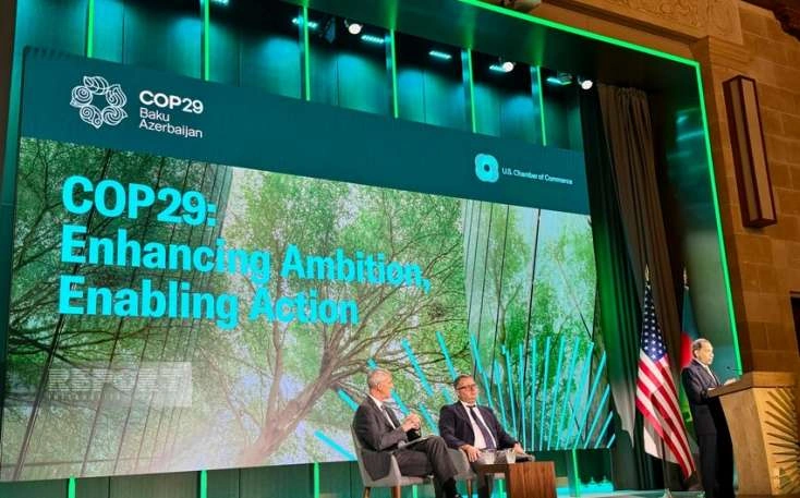Metbuat.az Report-a istinadən xəbər verir ki, Vaşinqton şəhərində Azərbaycan Respublikasının səfirliyi və Amerikanın Ticarət Palatasının birgə təşkilatçılığı ilə “COP29: Enhancing Ambition, Enabling Action” adlı hibrid formatda tədbir baş tutub. Tədbirdə ABŞ-ın dövlət qurumlarının, diplomatik korpus, özəl sektor, xarici və yerli media orqanlarının nümayəndələri və digər maraqlı tərəflər iştirak edib.