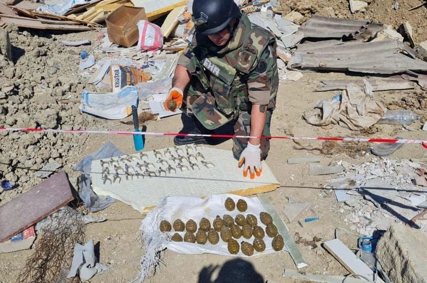 Bildirilib ki, hadisə yerlərinə baxış zamanı aşkar edilmiş sursatların döyüş tətbiqinə yararlı ümumilikdə 32 ədəd 7x62 mm-lik mərmi, 180 ədəd 5x45 mm-lik mərmi, 8 ədəd 9 mm-lik mərmi, 1 ədəd 9 mm-lik tapança, 25 ədəd F-1 əl qumbarası, 3 ədəd RQD-5 əl qumbarası və 33 ədəd UZRQM partladıcısı olduğu müəyyən edilib. Sursatlar zərərsizləşdirilməsi üçün ərazidən götürülərək kənarlaşdırılıb, 1 ədəd 9 mm-lik tapança aidiyyəti üzrə təhvil verilib.