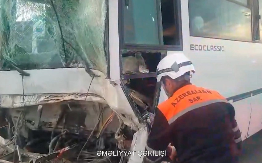 Hadisə yerində əməliyyat şəraiti qiymətləndirilərkən müəyyən olunub ki, “İSUZU” markalı avtobus ilə “Shacman” markalı yük avtomobilinin toqquşması nəticəsində yol-qəza hadisəsi baş verib və avtobusun sürücüsü deformasiyaya uğramış avtomobildə sıxılı vəziyyətdə qalıb.