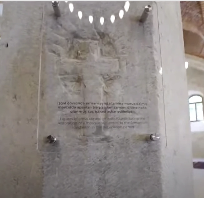 Qeyd edək ki, bərpa işləri zamanı Aşağı Gövhər Ağa məscidində erməni vandalizminə dair bir sıra faktlar aşkarlanıb. Belə ki, məscid divarlarında müxtəlif yazılar, müdaxilələr, o cümlədən divara həkk olunmuş xaç işarəsi müəyyən edilib.