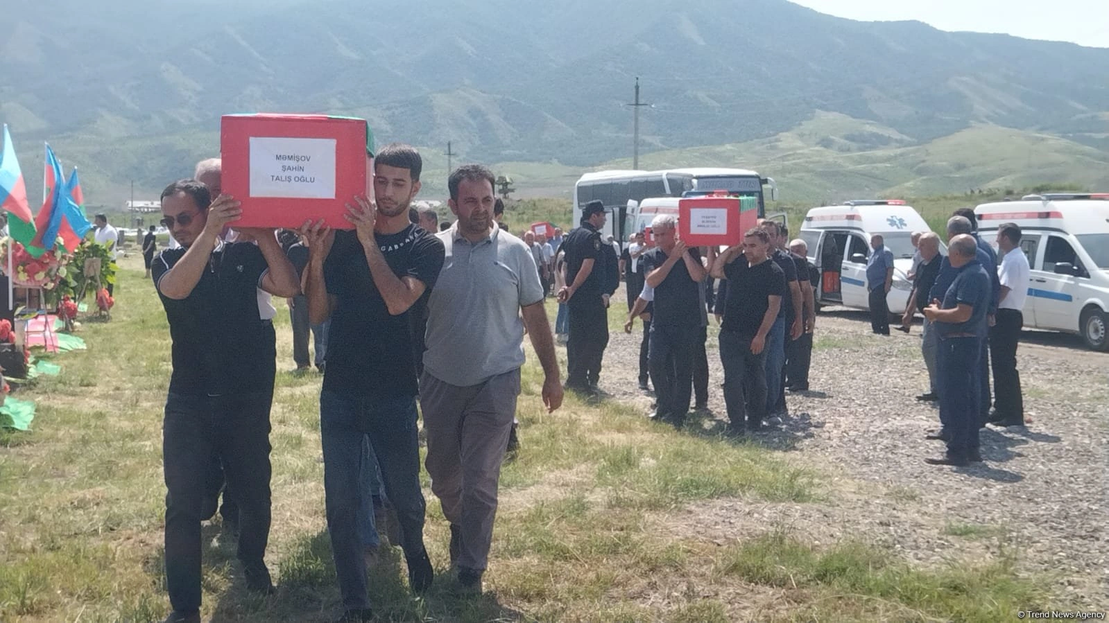 Dəfn mərasimində şəhidlərin doğmaları, Xocalı Rayon İcra Hakimiyyətinin vəzifəli şəxsləri, rayon hüquq-mühafizə orqanlarının əməkdaşları, hərbçilər və ictimaiyyət nümayəndələri iştirak ediblər.