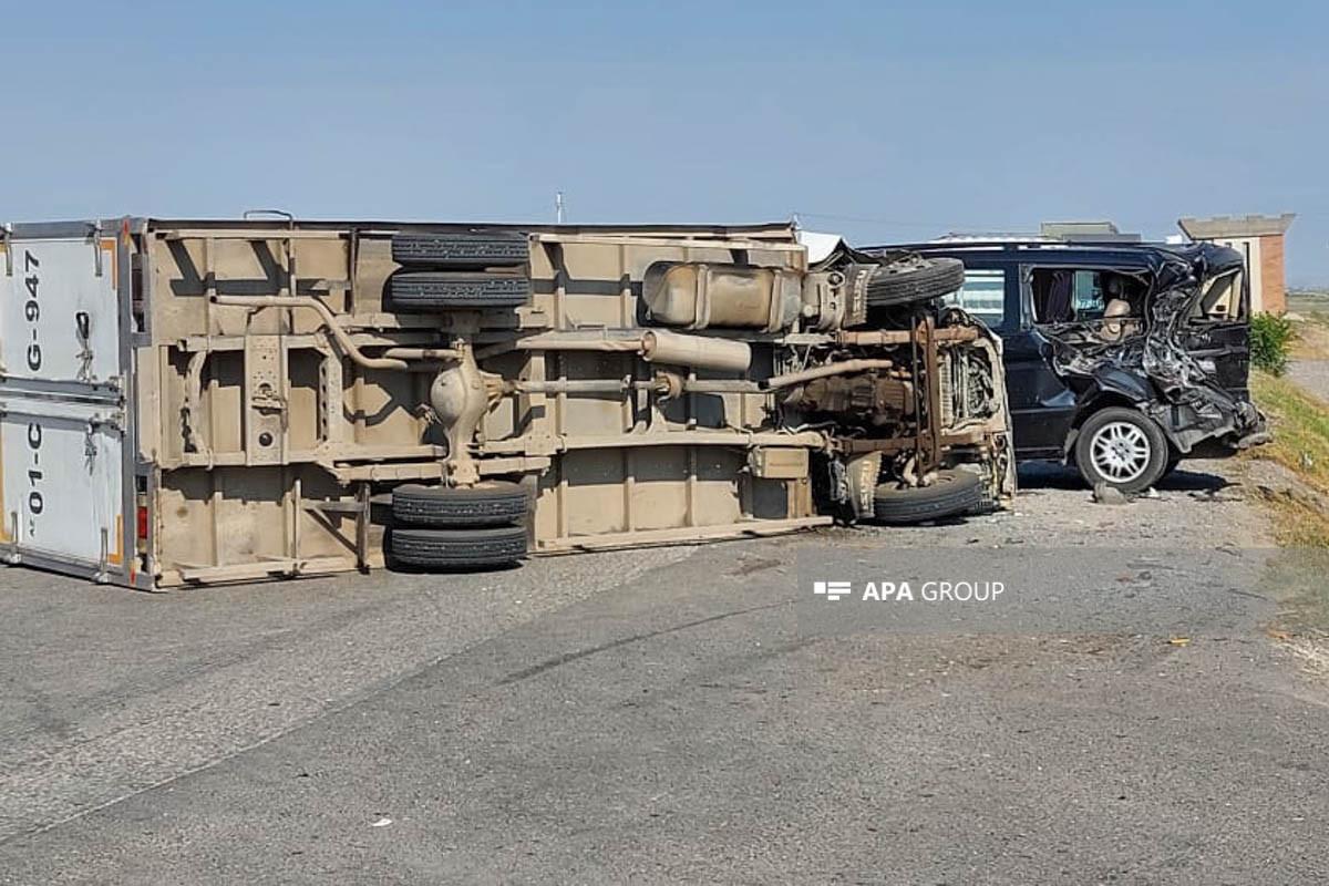 Modern.az APA-ya istinadən xəbər verir ki, qəza zamanı 2 mikroavtobus və yük avtomobili toqquşub.