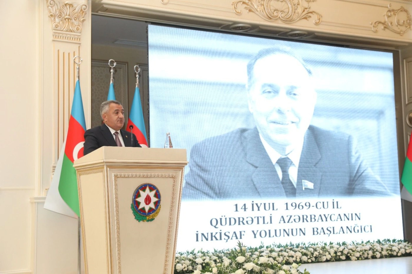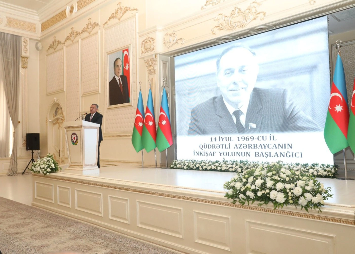 Tədbirdə çıxış edən Abşeron Rayon İcra Hakimiyyəti başçısı Abdin Fərzəliyev bildirib ki, Azərbaycanın bu günə qədər əldə etdiyi bütün naliyyətlər Ümummilli Lider Heydər Əliyevin adı ilə bağlıdır. Qeyd edilib ki, Ulu Öndərin ölkəmizdə birinci dəfə siyasi hakimiyyətə gəldiyi 1969-cu ilin 14 iyul günü xalqımızın tarixi taleyində oynadığı misilsiz rolu ilə daima hörmətlə xatırlanır. Bu tarix Azərbaycanın xilasının birinci mərhələsi, xalqın özünəqayıdış tarixidir. Heydər Əliyev siyasi fəaliyyətinin bütün mərhələlərində vətənə, xalqa, torpağa sonsuz məhəbbət və sədaqət hissi ilə, qurub-yaratmaq amalı ilə yanaşmış, hər zaman milli dəyərlərə bağlı olmuşdur. Ümummilli Lider Heydər Əliyevin fəaliyyəti nəticəsində ölkəmizdə yaşanan intibahdan, respublikamızda geniş vüsət alan hərtərəfli inkişafdan danışan RİH başçısı Ulu Öndərin milli ruhun dirçəldilməsində, dövlətçilik ənənələlərinin qorunub saxlanılmasındakı xüsusi xidmətlərindən söz açıb. Bildirilib ki, bütün həyatı və fəaliyyəti boyunca daima vətənini, onun suverenliyini, dövlətimizin güclənməsini düşünən Heydər Əliyev Azərbaycanın ən çətin məqamlarında onu üzləşdiyi faciələrdən, çətinliklərdən, bir dövlət kimi məhv olmaq təhlükələrindən xilas etmək üçün misilsiz xidmətlər göstərmişdir. Bu gün də Ümummilli Lider Heydər Əliyevin müəyyənləşdirdiyi siyasi kursu uğurla davam etdirən Azərbaycan Respublikasının Prerzidenti cənab İlham Əliyev vətənimizin ərazi bütövlüyünü təmin etmiş, Müzəffər Ali Baş Komandanın “Dəmir yumruğ”u ətrafında birləşən ordumuz Vətən Müharibəsində düşmən üzərində şanlı qələbə qazanmış və bununla da ata nəsihəti yerinə yetirilmişdir.
