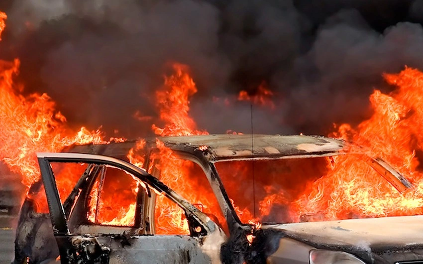 Şəmkir rayonunda minik avtomobili tamam yanıb.