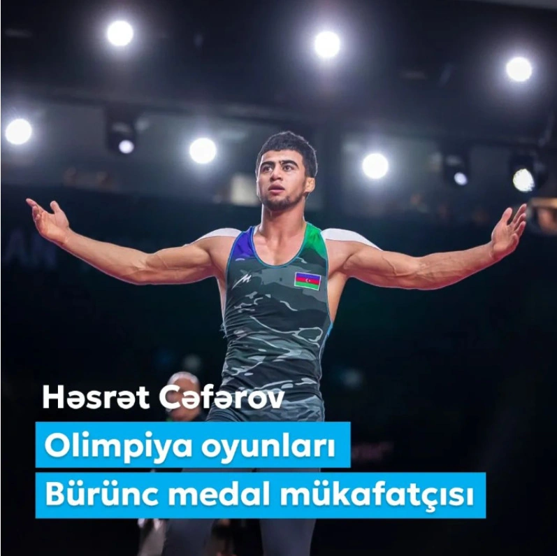 “Ura! Növbəti qələbəmiz! Azərbaycanın yunan-Roma güləşçisi Həsrət Cəfərov bürünc medal qazandı! İdmançımızı səmimi-qəlbdən təbrik edirəm! Azərbaycan azarkeşlərinə bəxş etdikləri sevincə görə bütün qaliblərə təşəkkürümü bildirirəm!”