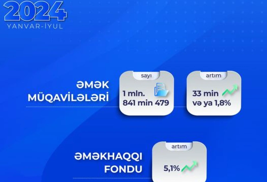 Bu ilin yanvar-iyul ayları ərzində ölkəmizdə əmək müqavilələrinin sayı 33 min və ya 1,8 faiz artaraq 1 milyon 841 min 479-a çatıb.