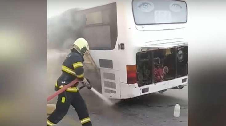 Hadisə nəticəsində avtobusun salon hissəsi qismən və arxa sol təkərləri yanıb. Avtobusun böyük hissəsi yanğından mühafizə olunub.