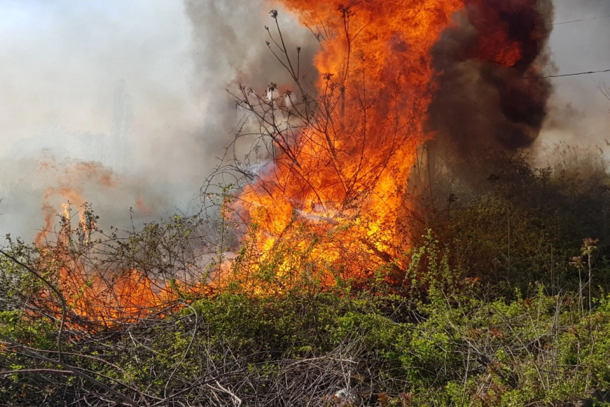 Yanğın nəticəsində təxminən 500 kv.m. sahədə kol-kos və qamışlıq yanıb.