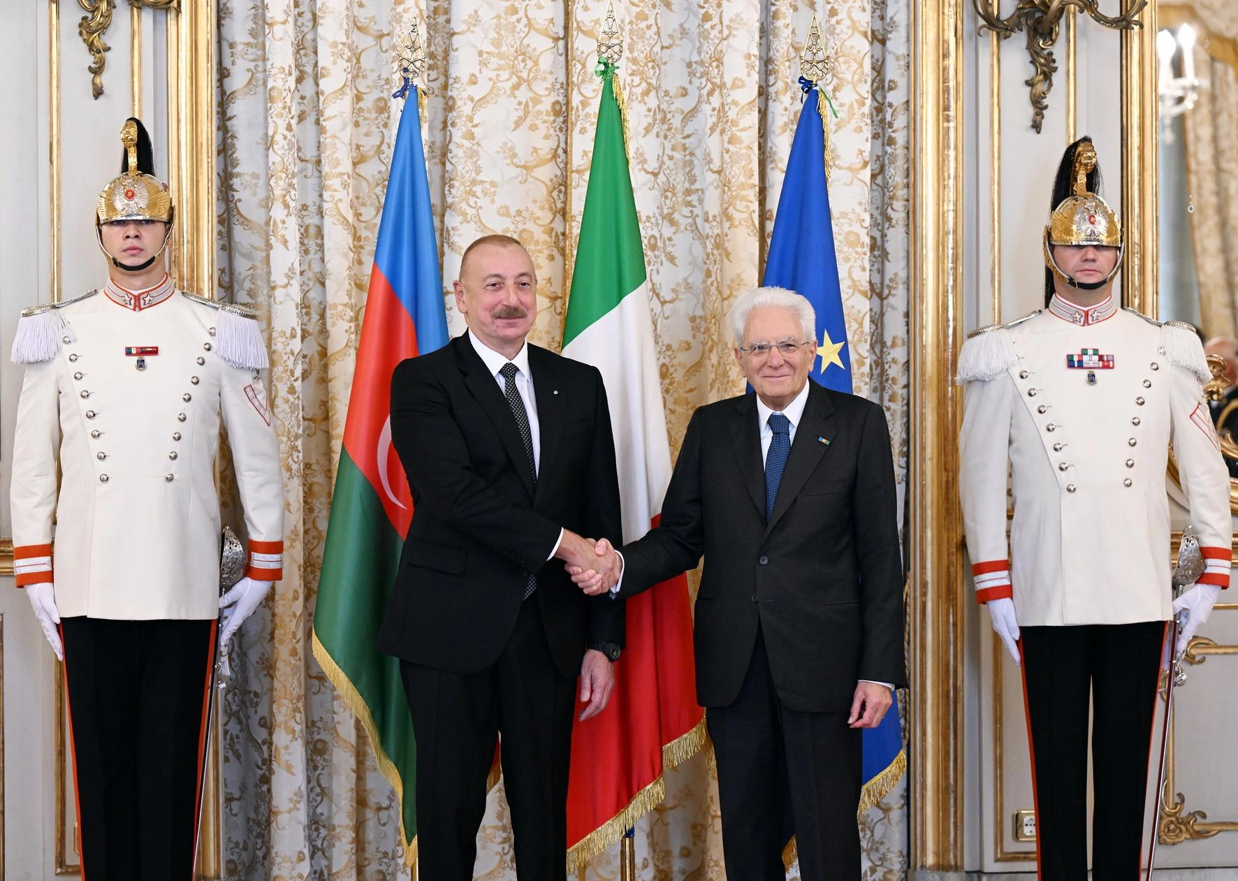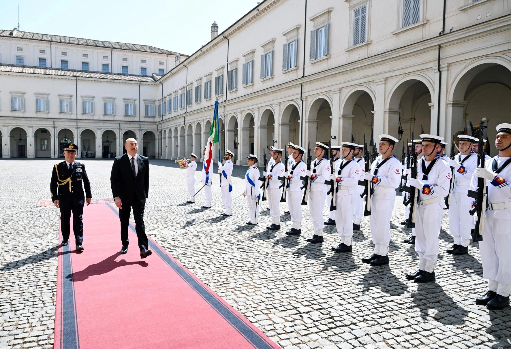 Metbuat.az xəbər verir ki, Romanın “Quirinale” Sarayında Prezident İlham Əliyevin şərəfinə fəxri qarovul dəstəsi düzülmüşdü.