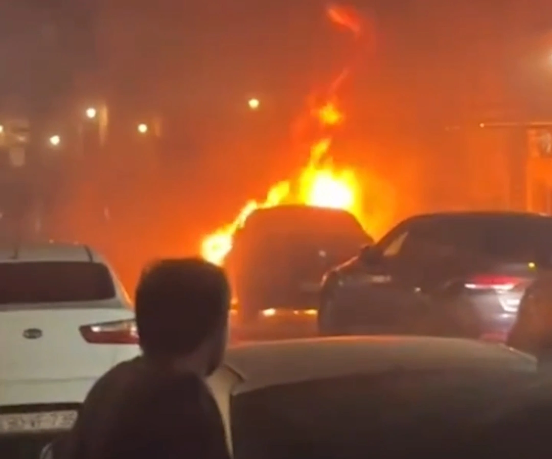 Bakıda küçənin ortasında avtomobil yanıb.