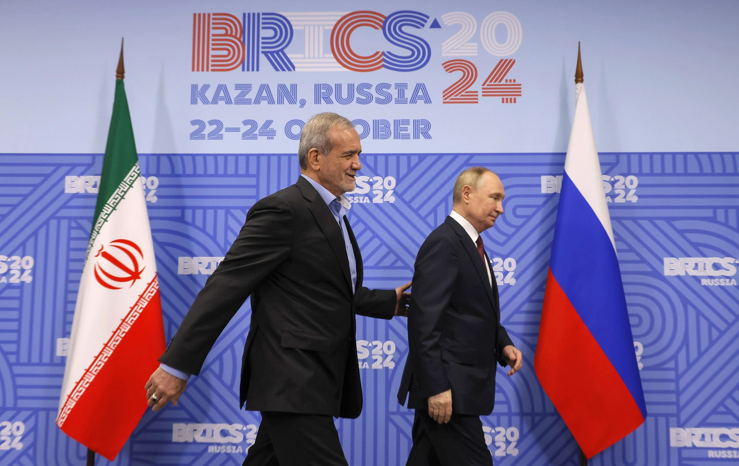 Oktyabr ayında Məsud Pezeşkian Kazanda keçirilən BRİKS sammitində iştirak edib və burada Rusiya prezidenti Vladimir Putinlə görüşüb. Rusiya liderini “dostum” adlandıran Məsud Pezeşkian ümid etdiyini bildirib ki, Rusiya Federasiyası ilə Hərtərəfli Strateji Tərəfdaşlıq Sazişi “ən ilk fürsətdə tərəflərin razılaşdırdığı tarixdə” imzalanacaq.