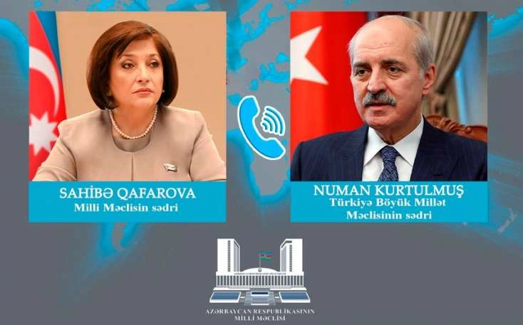 Azərbaycan Milli Məclisinin sədri Sahibə Qafarova ilə Türkiyə Böyük Millət Məclisinin sədri Numan Kurtulmuş arasında telefon danışığı olub.