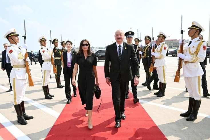 Metbuat.az xəbər verir ki, Pekin Beynəlxalq Hava Limanında dövlət başçısının şərəfinə fəxri qarovul dəstəsi düzülmüşdü.