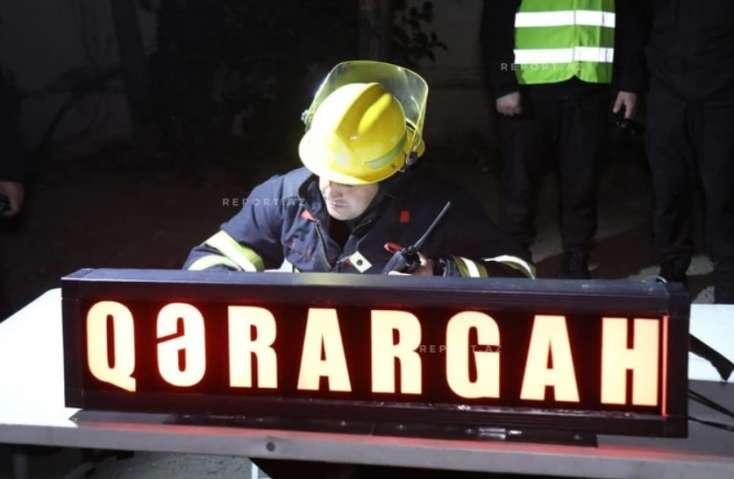 Bakı şəhəri, Yasamal rayonu, Mirəli Seyidov küçəsində yanğının baş verdiyi çoxmərtəbəli yaşayış binasının qarşısında FHN tərəfindən xüsusi qərargah yaradılıb.