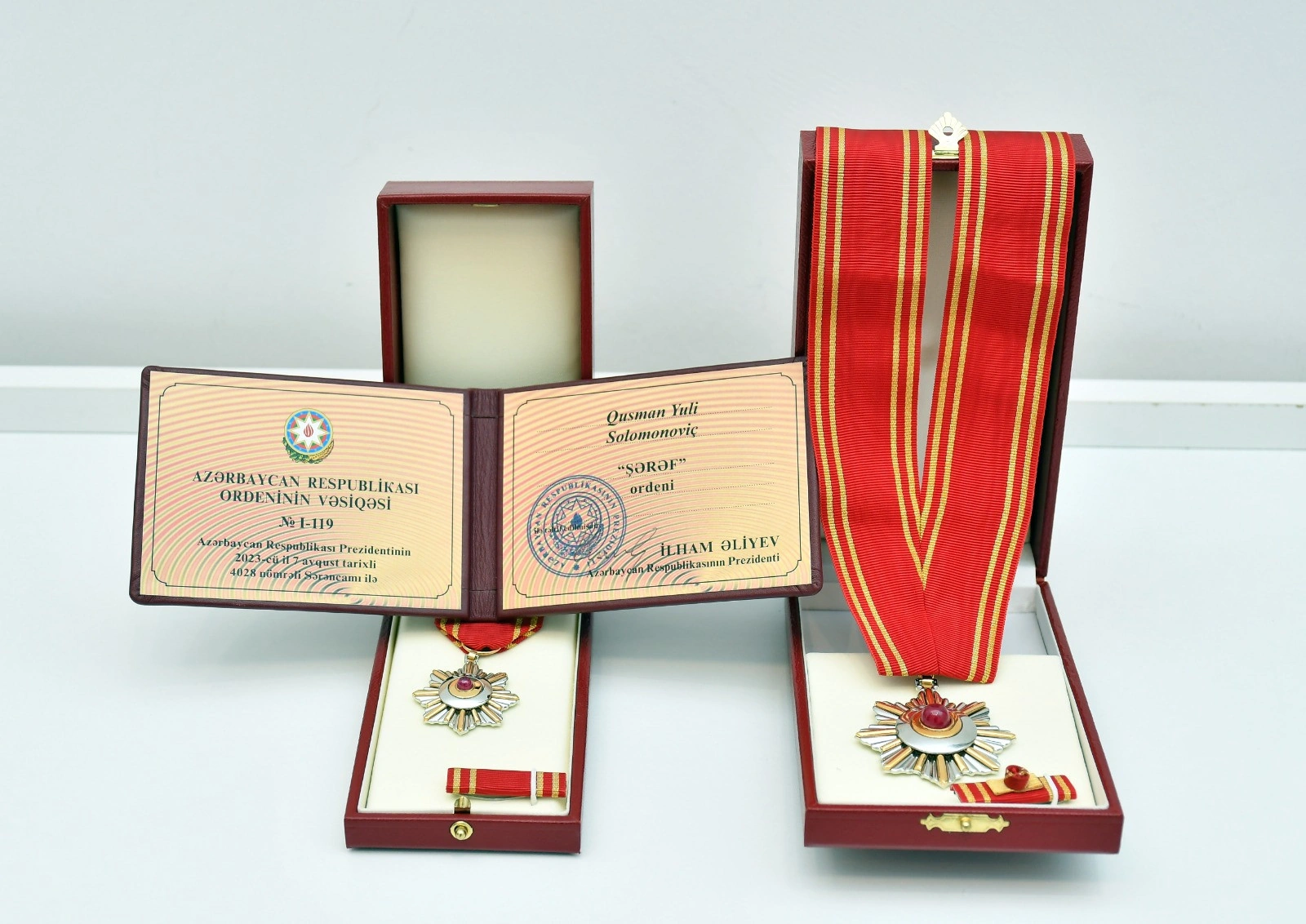 Xatırladaq ki, Yuli Qusman Prezident İlham Əliyevin 7 avqust 2023-cü il tarixli sərəncamı ilə, Azərbaycan Respublikası ilə Rusiya Federasiyası arasında mədəni əlaqələrin inkişafında böyük xidmətlərinə görə bu ali ordenlə təltif olunub.
