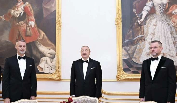 Paylaş Facebook Twitter LinkedIn Pinterest Dekabrın 8-də Bratislavada Azərbaycan Respublikasının Prezidenti İlham Əliyevin şərəfinə Slovakiya Respublikasının Prezidenti Peter Pelleqrininin adından rəsmi ziyafət verilib.Metbuat.az xəbər verir ki, Dövlət başçıları ziyafətdə çıxış ediblər.