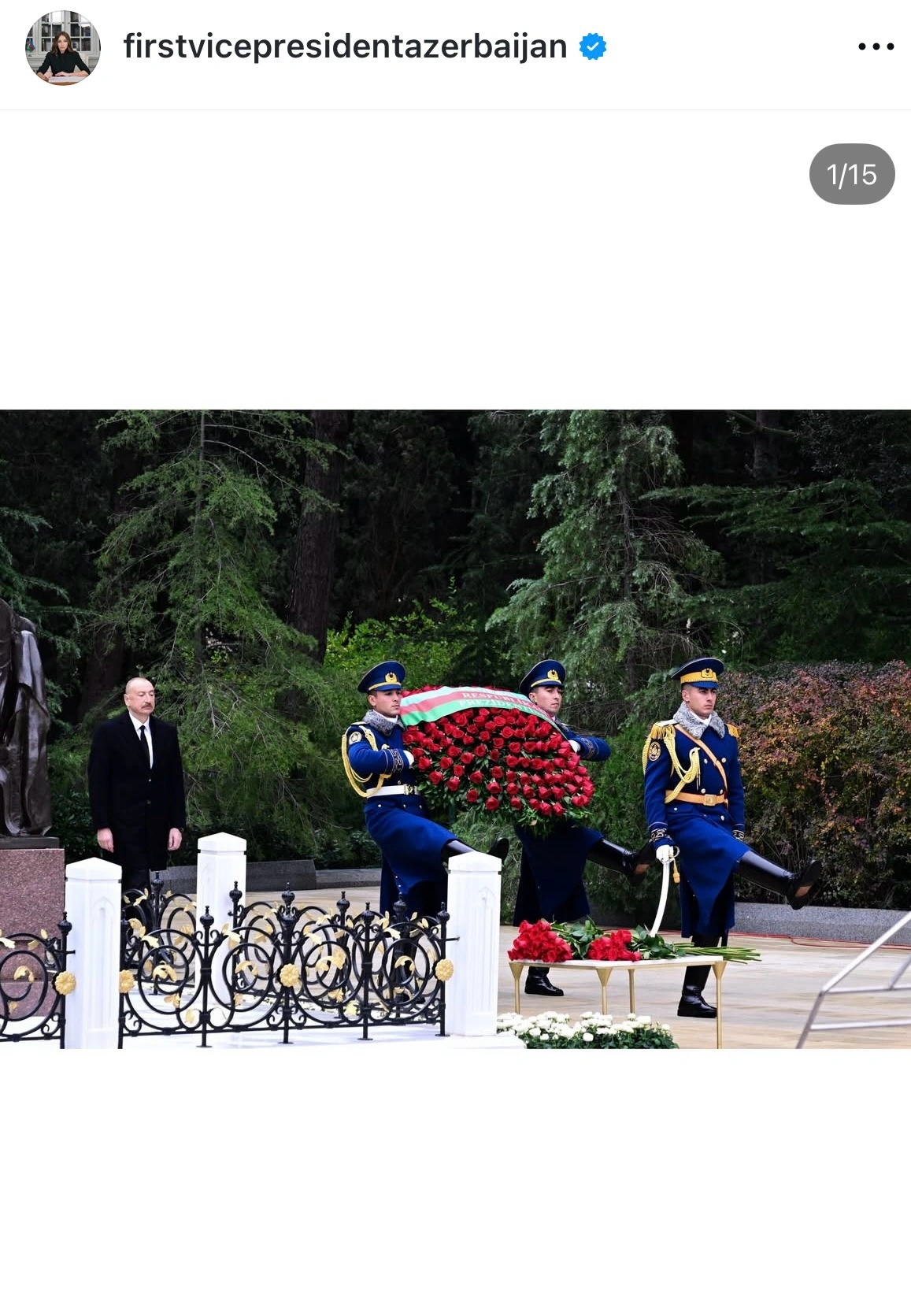 Paylaş Facebook Twitter LinkedIn Pinterest Azərbaycanın Birinci vitse-prezidenti Mehriban Əliyeva Ulu Öndər Heydər Əliyevin anım günündə Fəxri xiyabanı ziyarət etməsi ilə bağlı "Instagram" hesabında paylaşım edib.Metbuat.az paylaşımı təqdim edir: