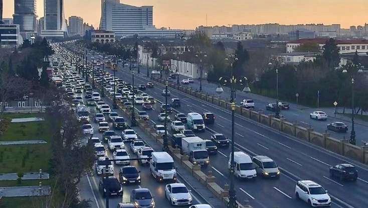 Bakının bir sıra yollarında nəqliyyatın sıxlığı yaranıb.