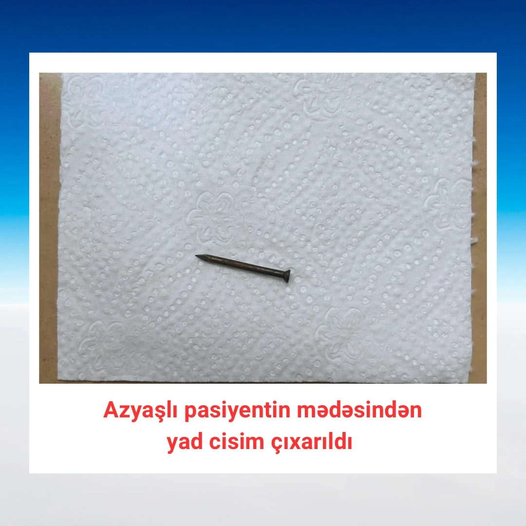 Həkim-qastroenteroloq Gülnar Ağayeva tərəfindən həyata keçirilən endoskopik müdaxilə zamanı yad cisim mədədən təhlükəsiz şəkildə çıxarılıb. Prosedur uğurla başa çatıb, pasiyentin vəziyyəti stabildir.