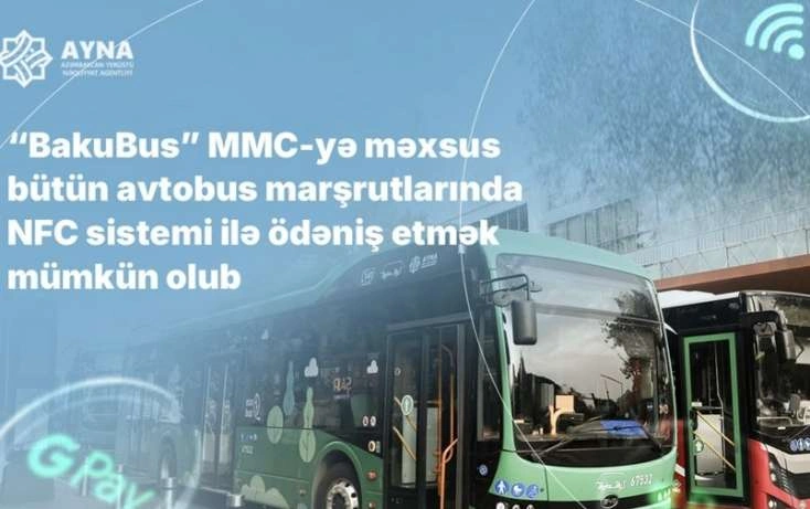 Bu gündən Bakı şəhəri üzrə "BakuBus" MMC-yə məxsus bütün avtobus marşrutlarında NFC sistemini dəstəkləyən yerli bank kartları, eləcə də "Apple Pay" və "Google Pay" vasitəsilə nağdsız ödəniş mexanizmi tam şəkildə aktivləşdirilib.