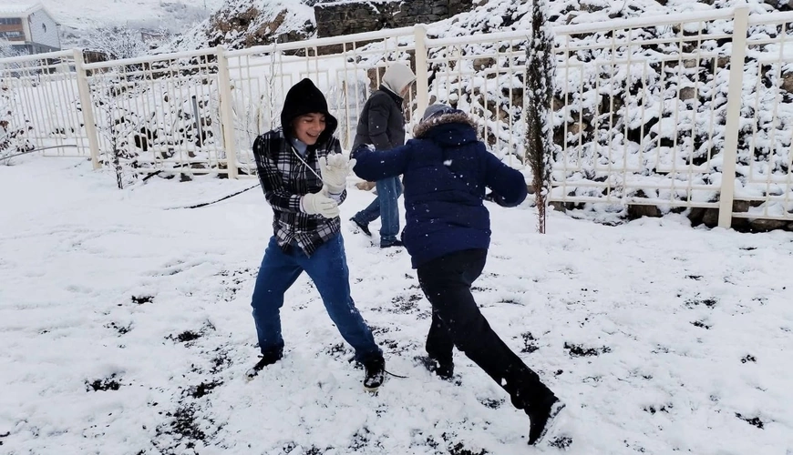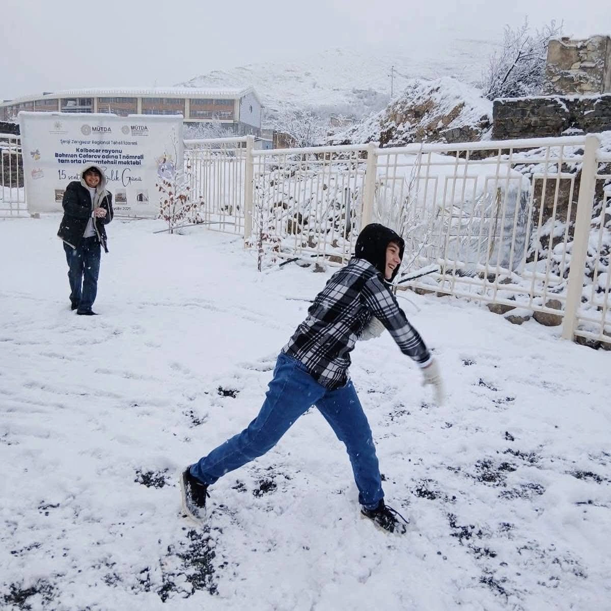 Kəlbəcər rayonuna qar yağması yeni qurulan Kəlbəcər şəhərinə bir neçə ay öncə köçmüş uşaqları daha çox sevindirib.