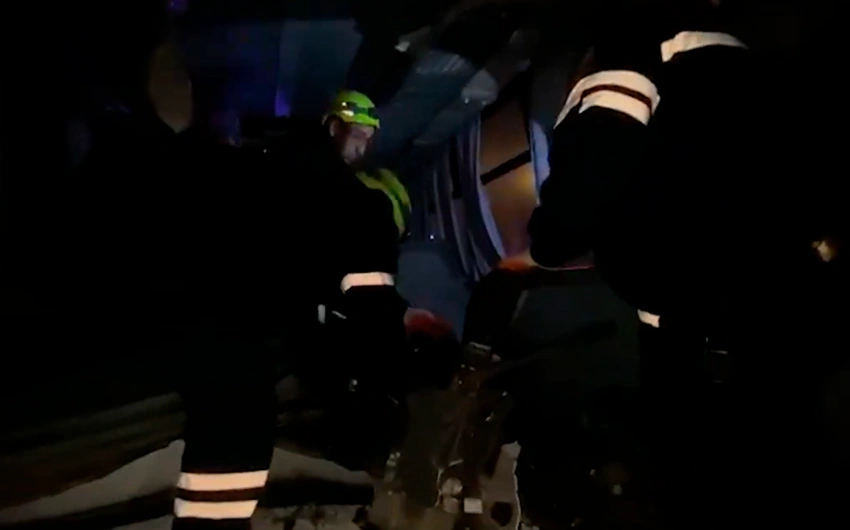 Hadisə yerində əməliyyat şəraiti qiymətləndirilərkən müəyyən olunub ki, “DAF” markalı yük avtomobili ilə “Otoyol” markalı avtobusun toqquşması nəticəsində yol-qəza hadisəsi baş verib və “Otoyol” markalı avtobusun sürücüsü deformasiyaya uğramış nəqliyyat vasitəsində sıxılı vəziyyətdə qalıb.
