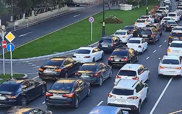 Bakının bir sıra yollarında tıxac yaranıb.