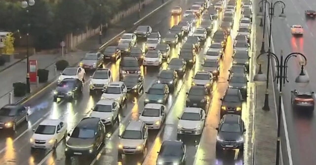 Bakının bir sıra yollarında nəqliyyatın sıxlığı müşahidə olunur.
