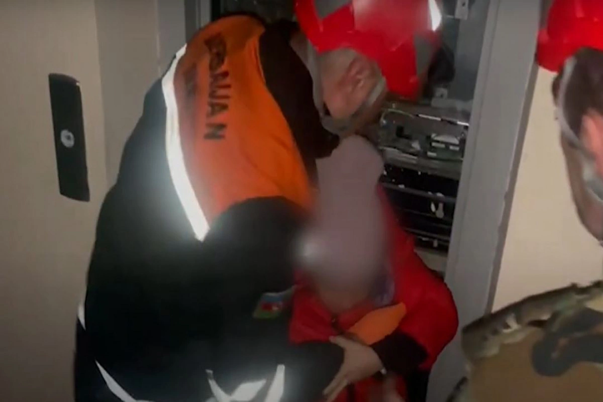 Xilasedicilər xüsusi alət və avadanlıqlar vasitəsilə liftin qapısını açaraq köməksiz vəziyyətdə qalan sakinləri xilas ediblər.