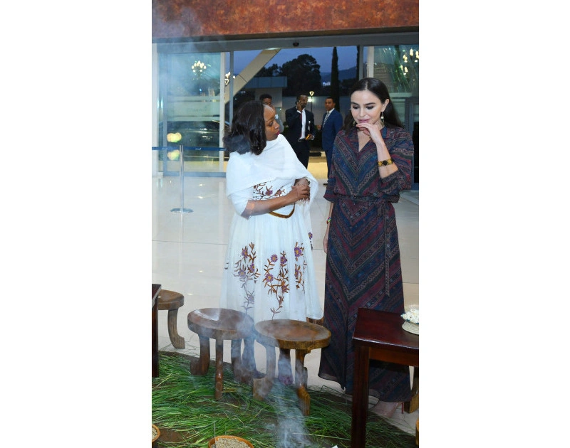 Leyla Əliyevanın şərəfinə Efiopiyanın qədim və zəngin mədəniyyətini əks etdirən ənənəvi qəhvə mərasimi təşkil olunub. Tədbir zamanı qonaqlara bu qədim ritualın detalı haqqında məlumat verilib. Mərasimin sonunda qonaqlara əsrarəngiz ətri və özünəməxsus dadı ilə seçilən təzə dəmlənmiş Efiopiya qəhvəsi təqdim olunub.