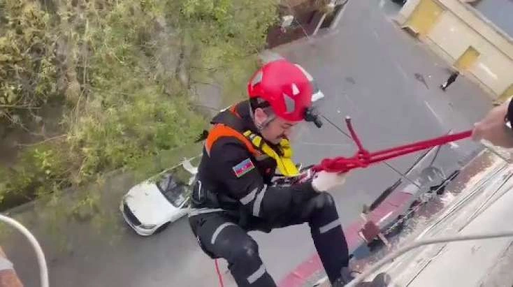 Xilasedicilər alpinist ləvazimatlarının köməyi ilə doqquzmərtəbəli yaşayış binasının 7-ci mərtəbəsində yerləşən mənzilə eyvandan daxil olaraq 1934-cü il təvəllüdlü G.Cabbarovanı xilas ediblər.