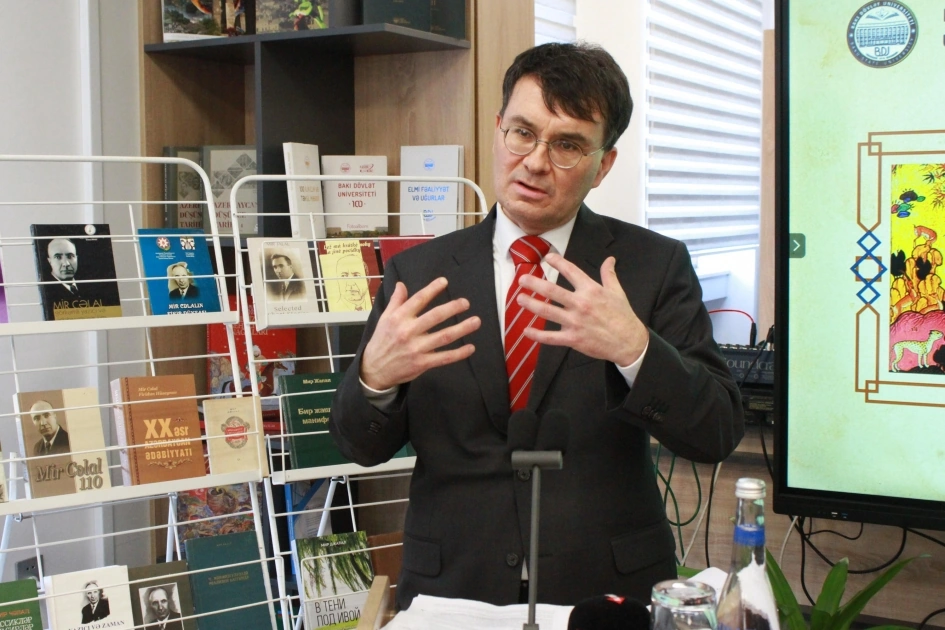 Tədbirdə Mixael Raynhard Hess görkəmli alim və yazıçı Mir Cəlalın ədəbi irsindən bəhs edib.