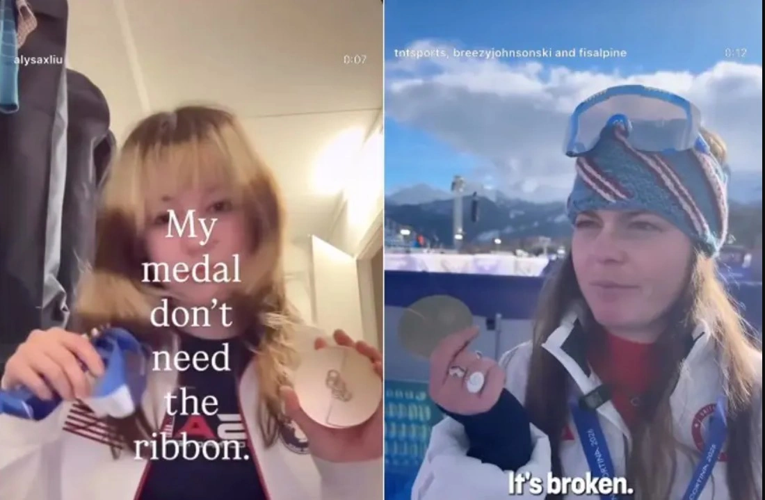 Amerikalı konkisürən Alysa Liu medalının lentinin qırıldığını göstərib, xizəkçi Brizi Consonun qızıl medalı isə lentindən ayrılıb və düşərkən çatlayıb. Conson yarışdan sonra ikinci yeri tutan Emma Ayçerə medalını taxarkən tullanmamağı tapşırıb.